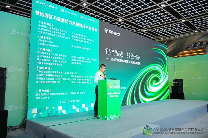 5月28日,在零碳園區(qū)與能源動力站管理技術交流會上,泛仕達技術支持經(jīng)理彭利波發(fā)表了《智控高效,綠色節(jié)能,泛仕達探索EC風機在AHU/FFU的應用》的主題演講。